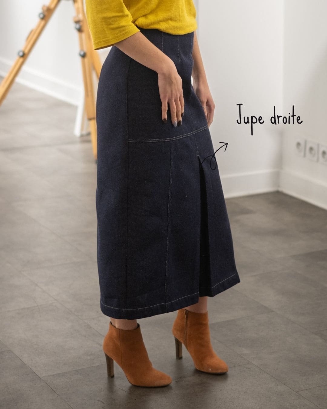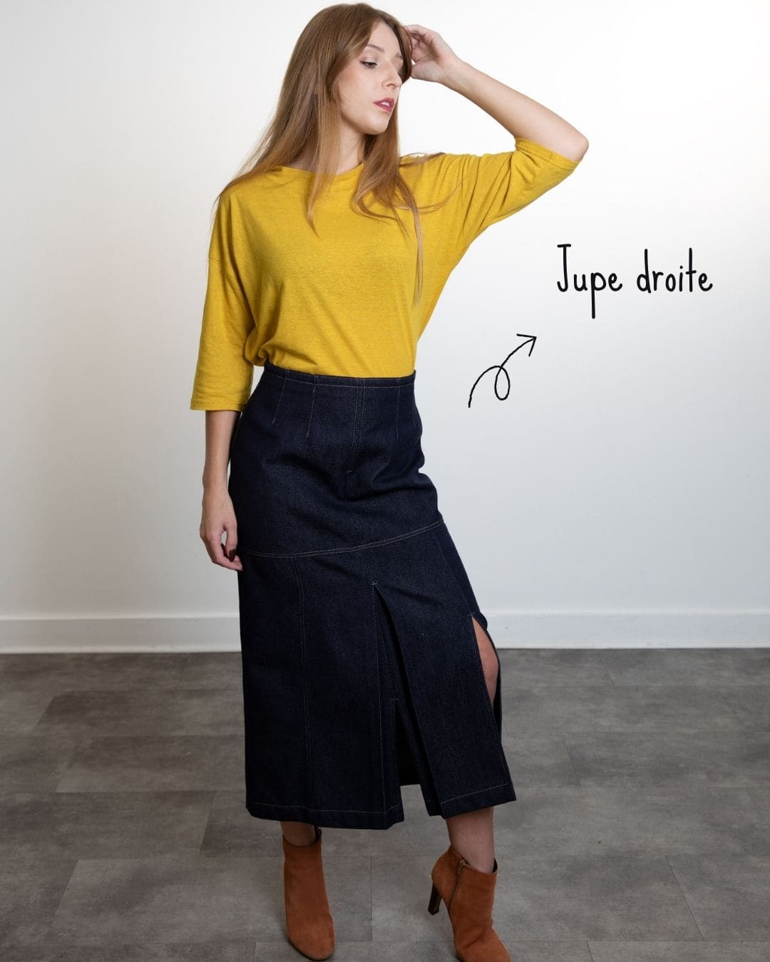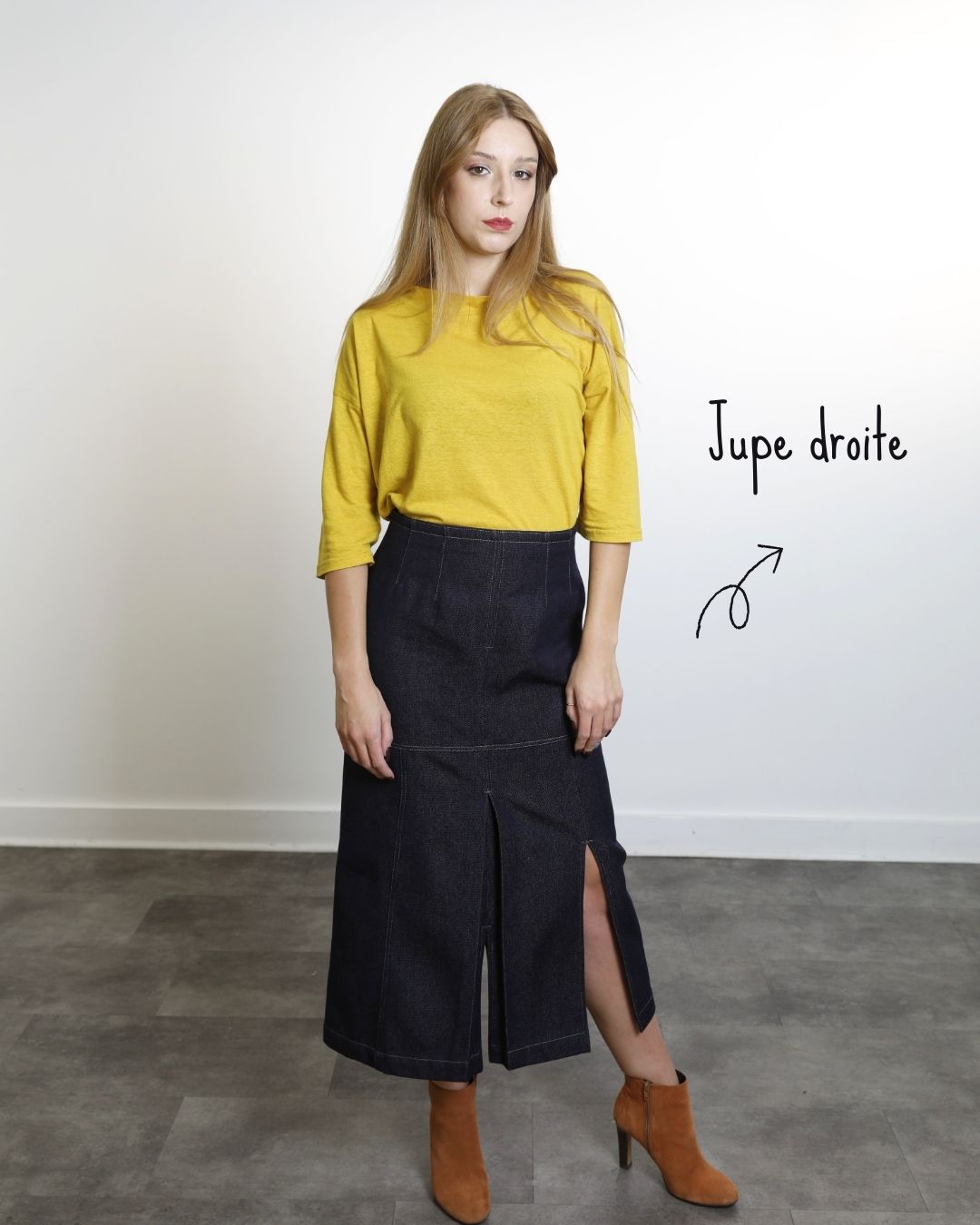 Jupe longue droite fendue avec plis creux devant en Laine froide & Coton bio.