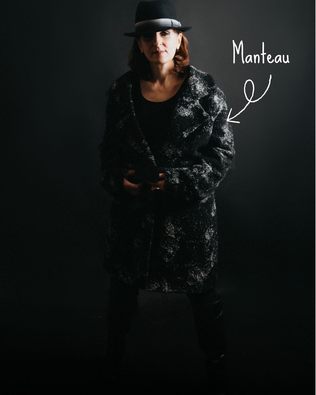 Manteau coupe droite col tailleur style année 80 en coloris noir et écru.
