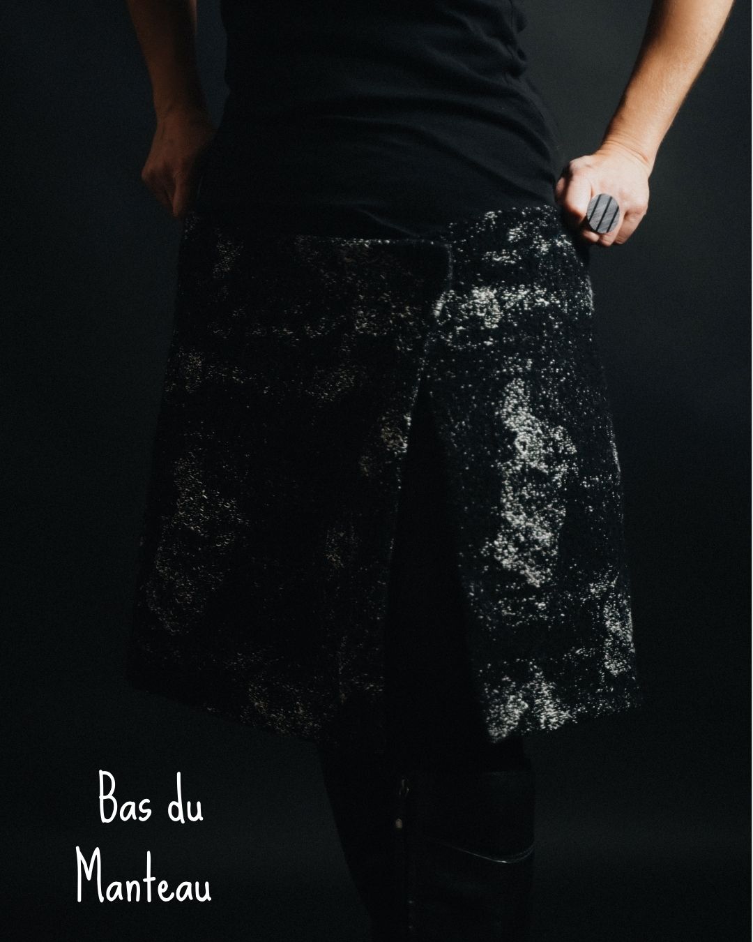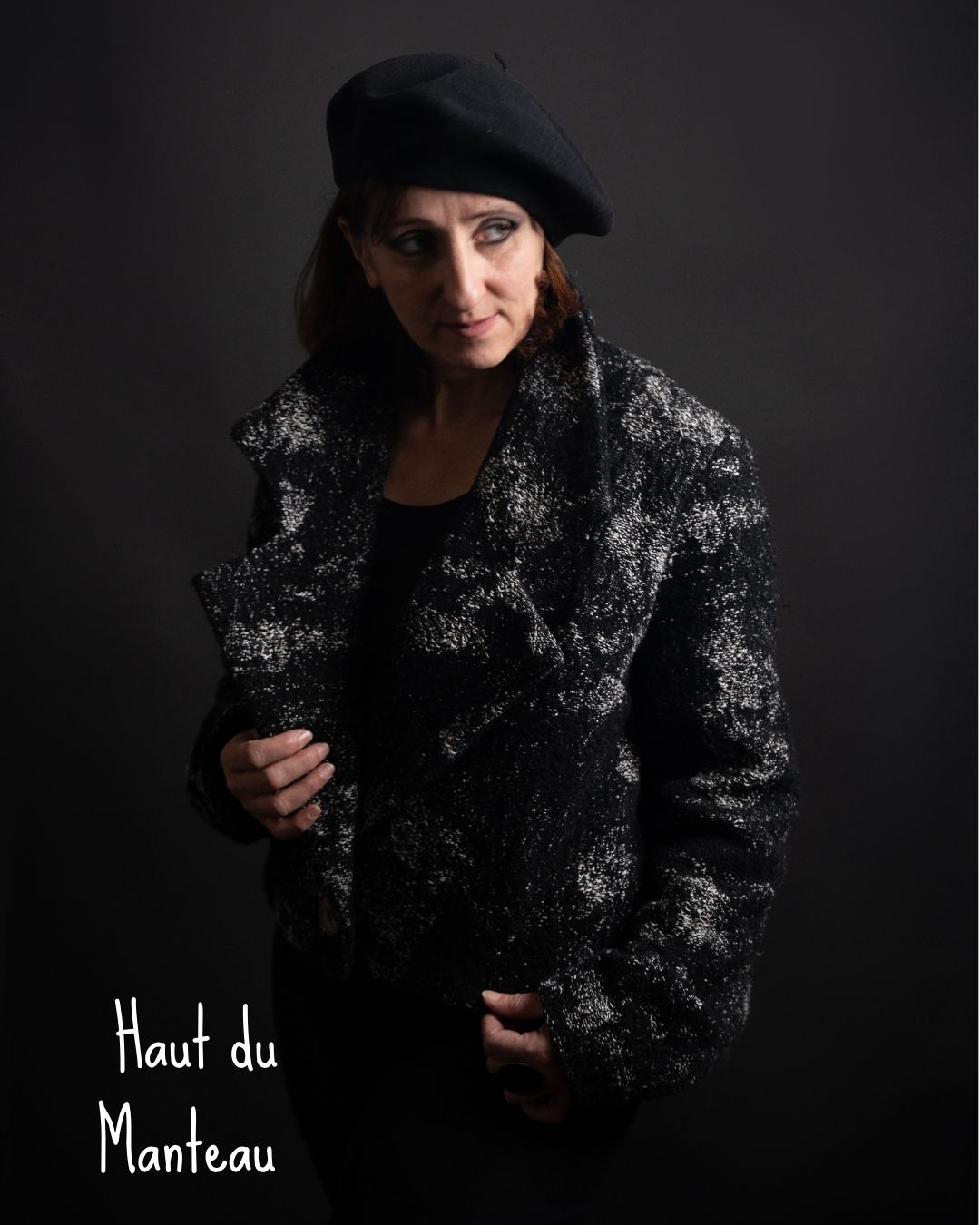 Manteau transformable coupe année 80 en Lainage et Chanvre noir et écru