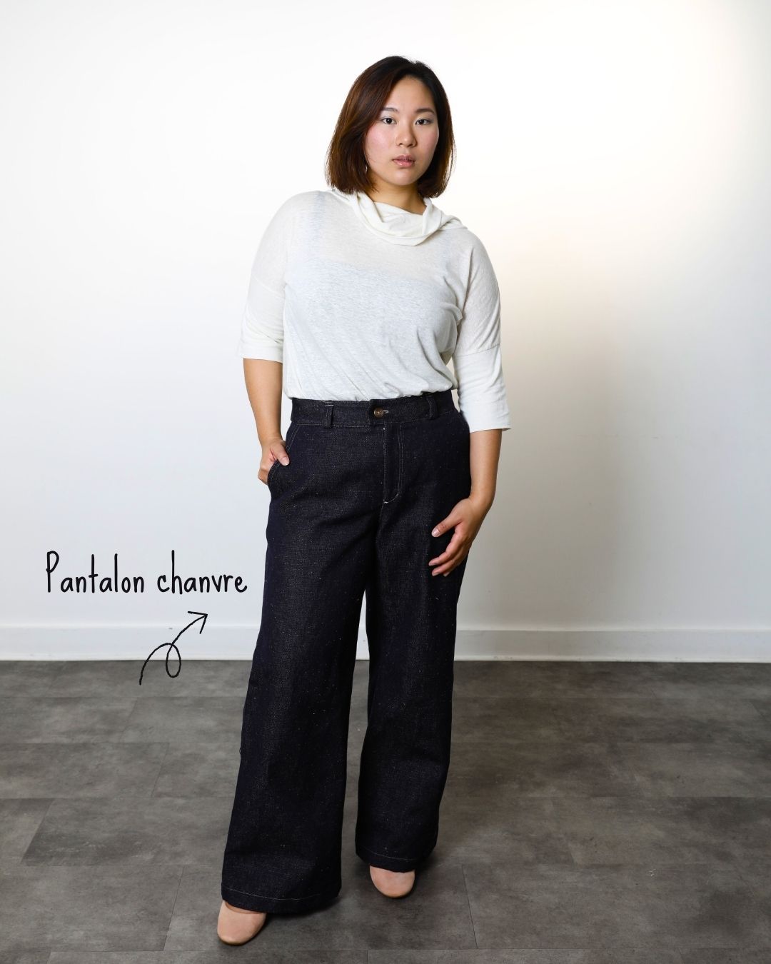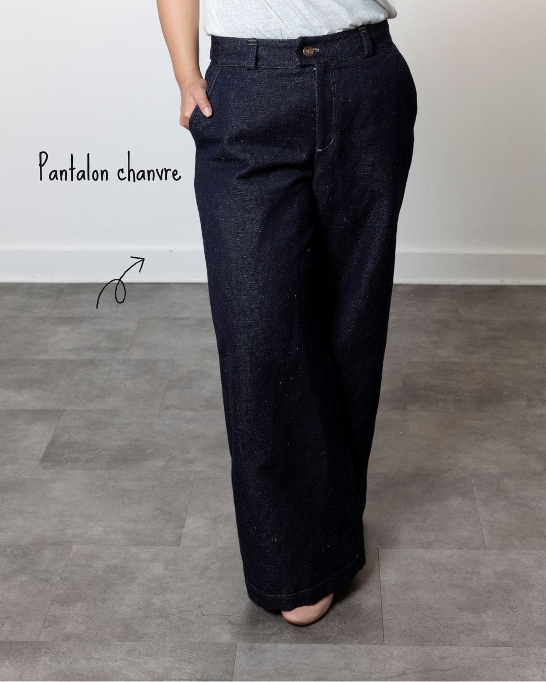 Pantalon large  en Denim Chanvre & Coton bio coloris bleu marine chiné écru.