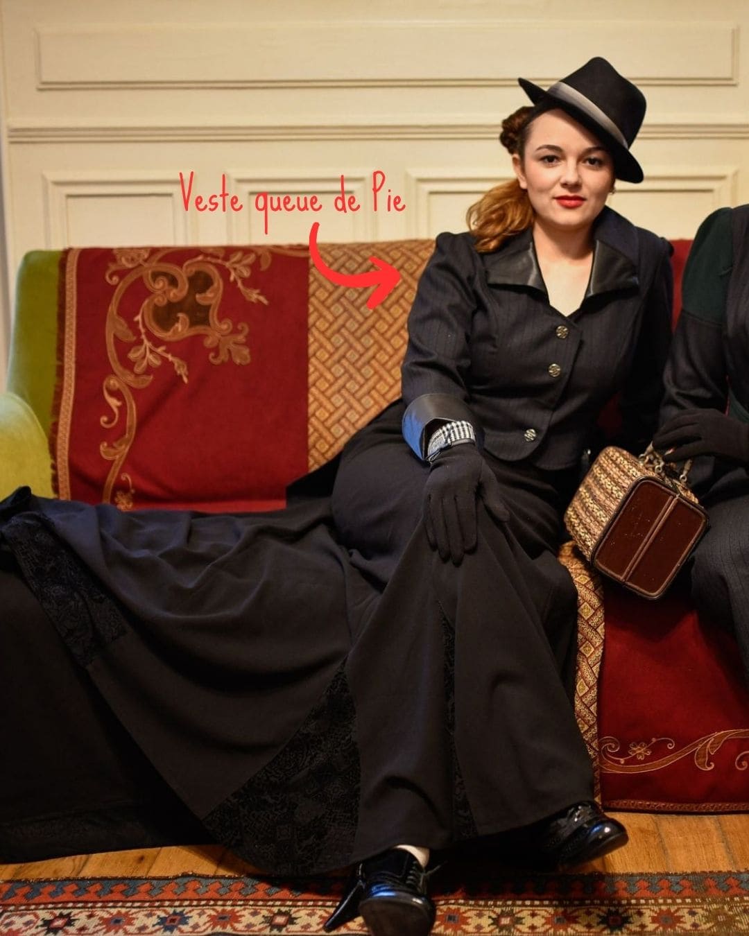 En Lainage d’hiver et satin noir , la matière est issue des stocks dormants – origine France.